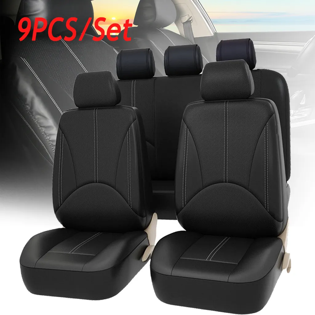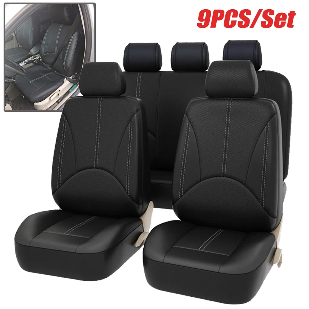 9 Tlg. Universal Auto Sitzbezug Auto Schonbezüge Kunstleder Sitzauflage Komplettset Schwarz