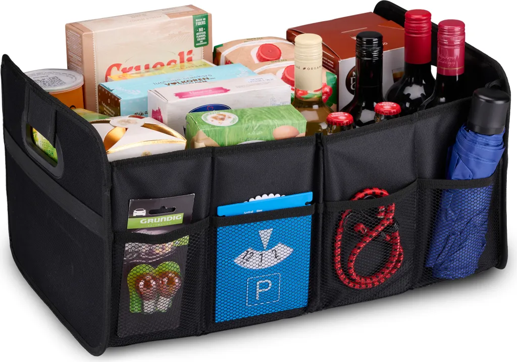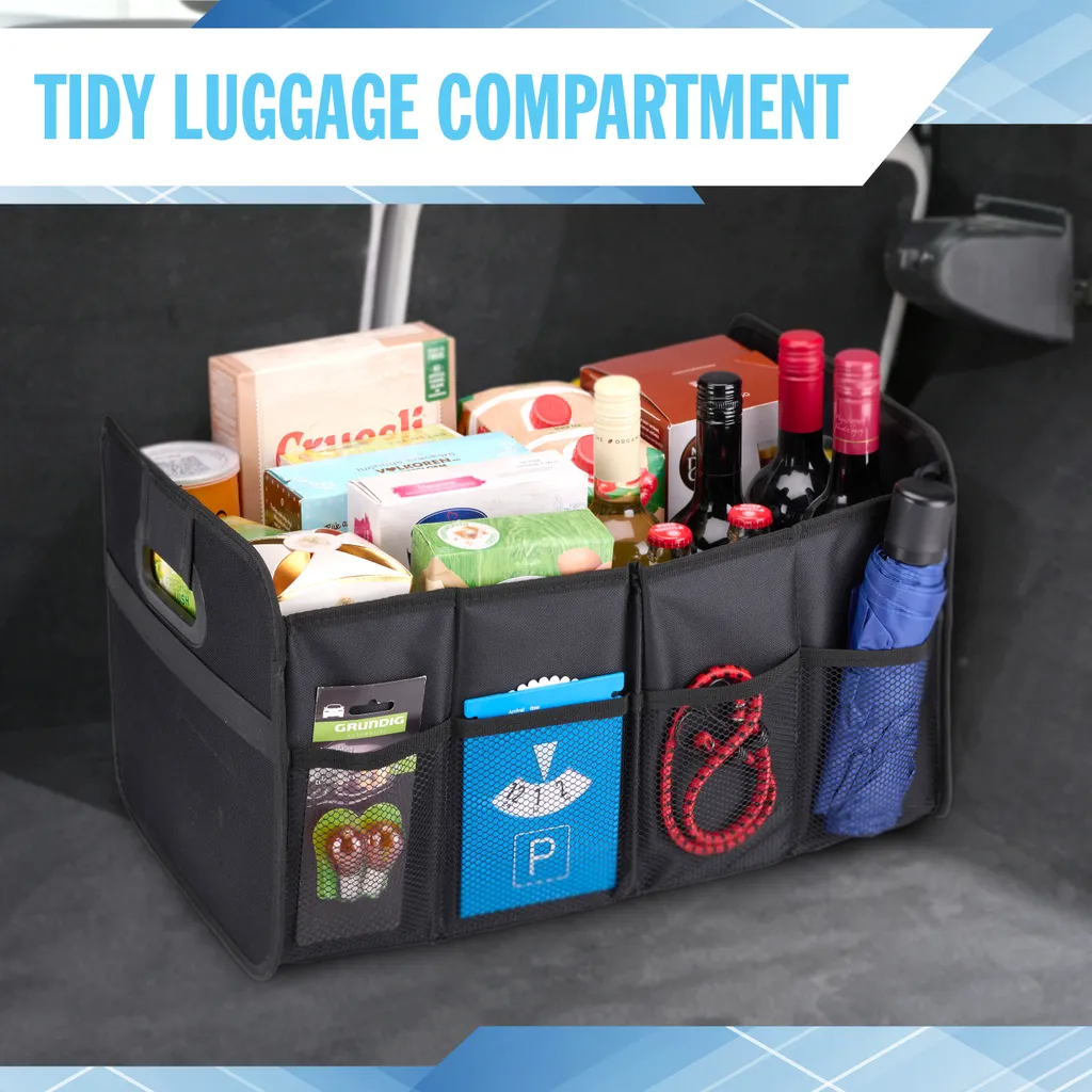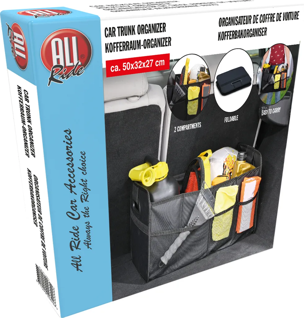 All Ride Kofferraum Organizer – 50 X 32 X 70 CM – 2 Große Fächer Und Einsätze – Organisieren Von Auto Zubehör – Faltbares Design – Schwarz