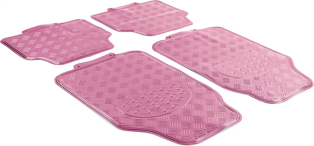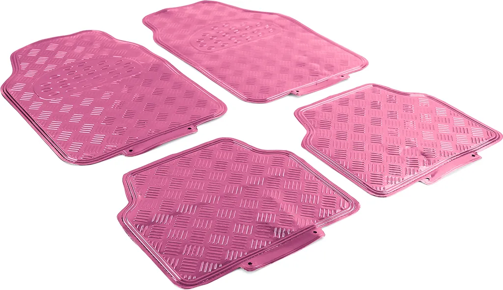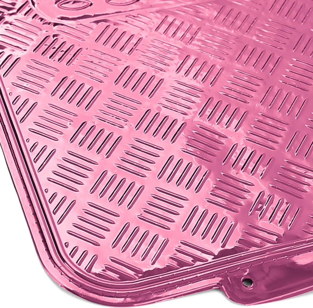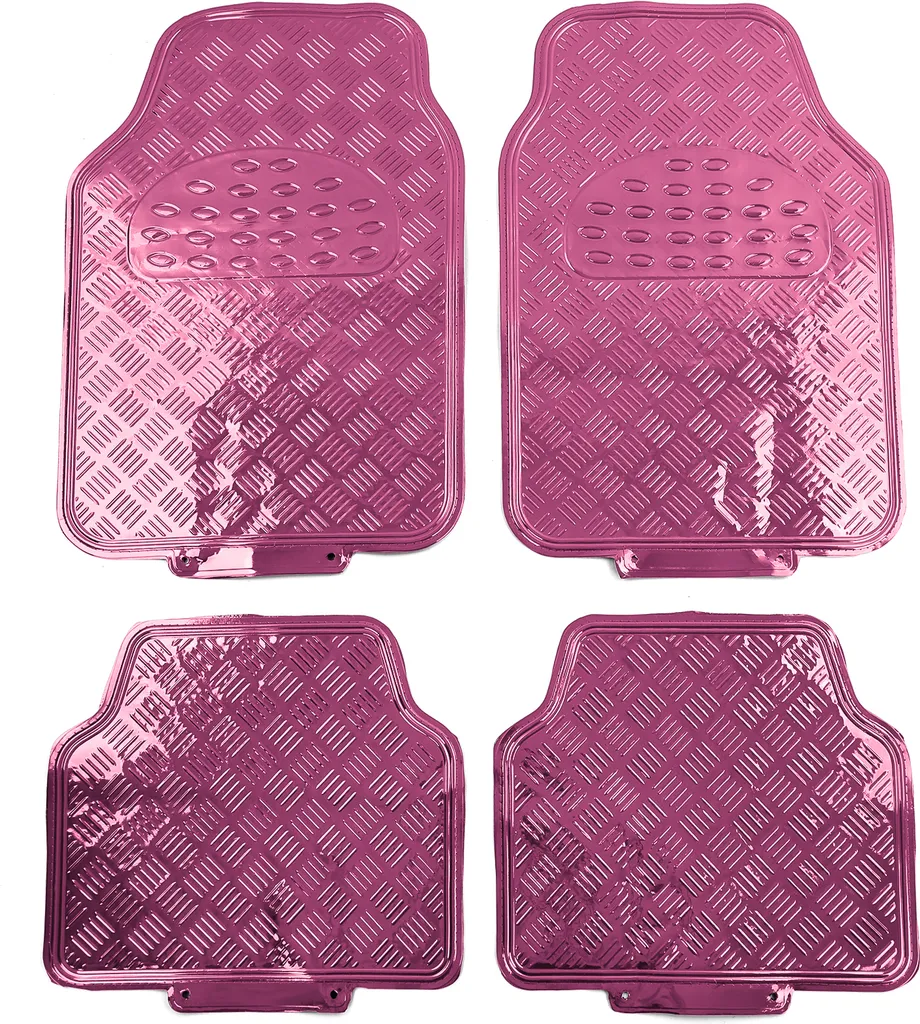 Auto Gummi Fußmatten Universal Alu Riffelblech Optik 4-teilig Chrom Pink