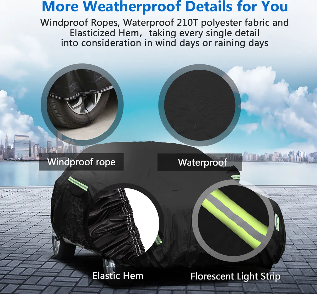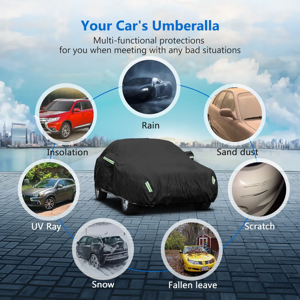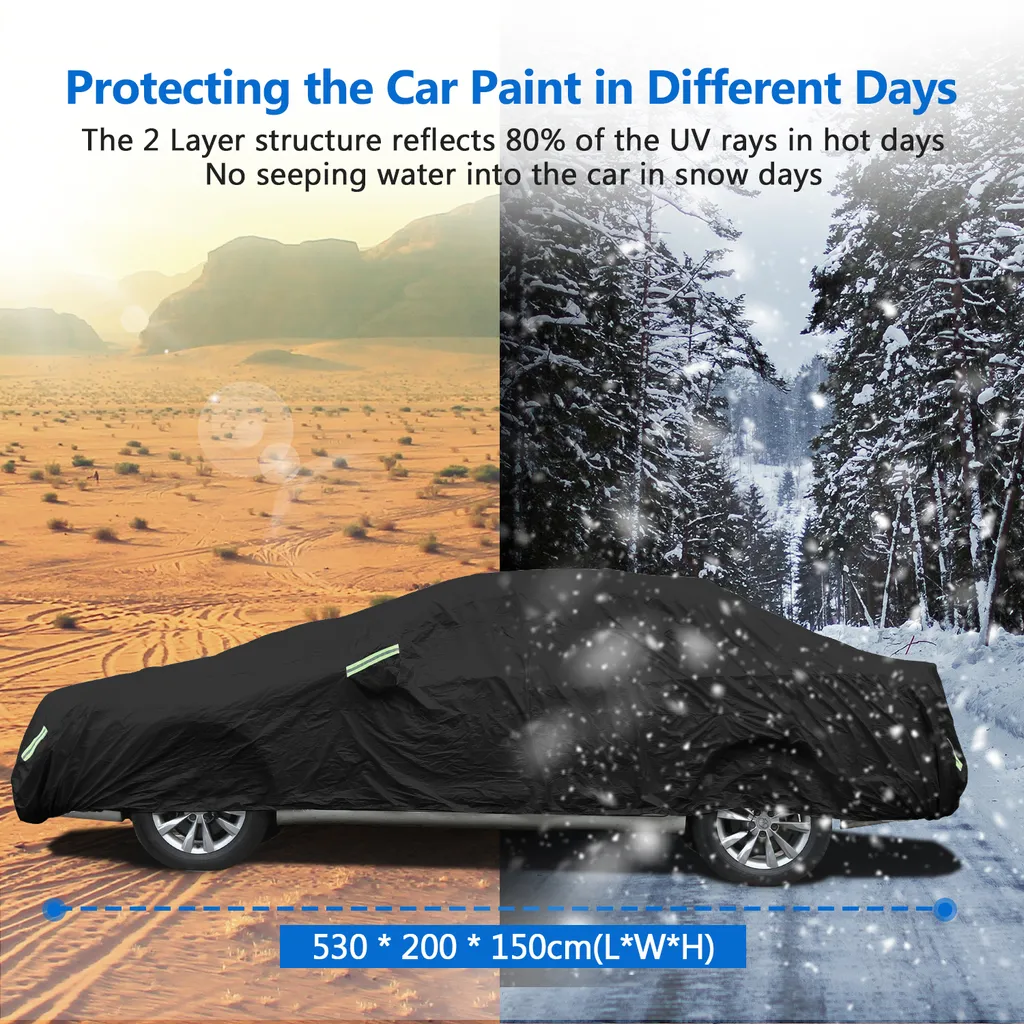 Autoabdeckung Vollgarage Abdeckplane Autogarage, 530x200x150 Cm 210T Autoplane Ganzgarage, Wasserdicht, UV- Und Staubbeständige Hagelschutzdecke, Schwarz