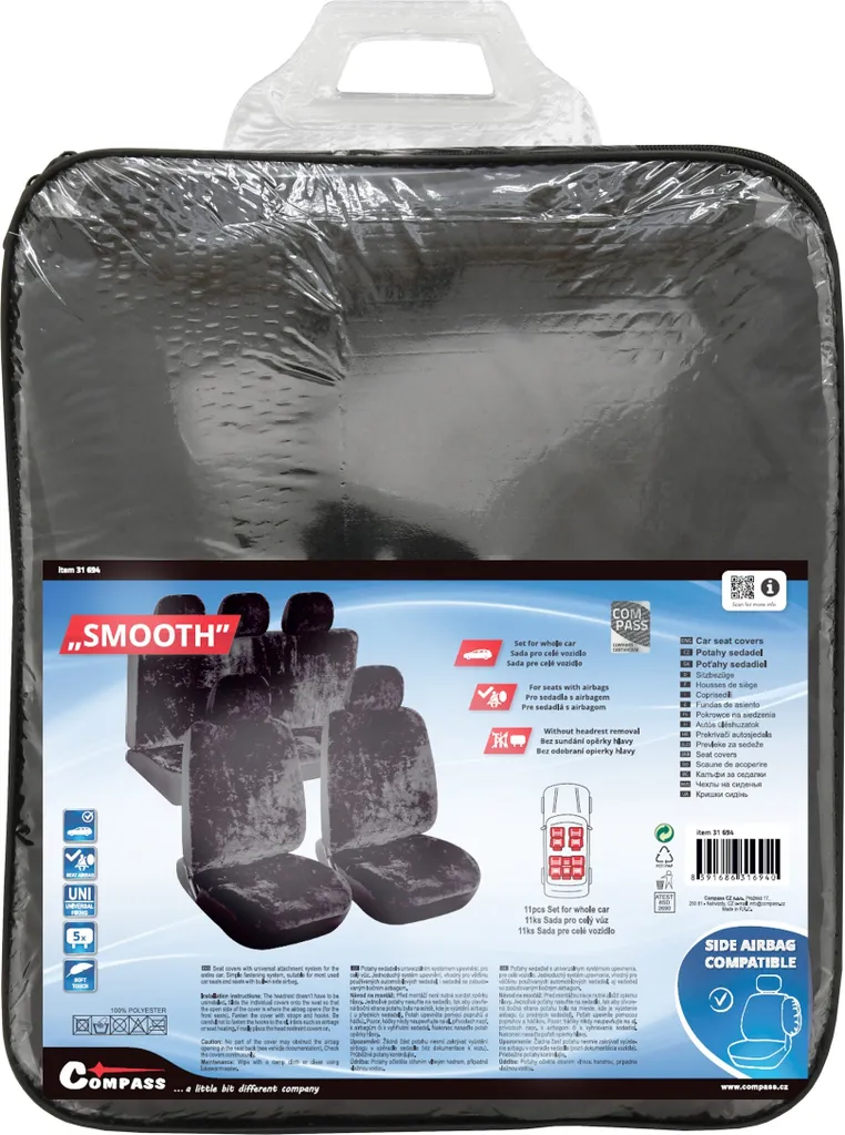 Compass 31694 – Autositzbezüge 11 Stück SMOOTH Schwarz