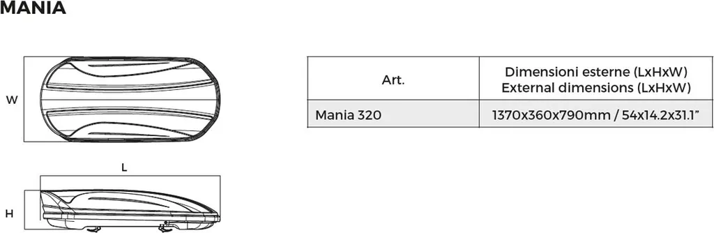 Dachbox VDP-MAA320 Schwarz Matt Dachkoffer Autokoffer Abschließbar 320 Liter