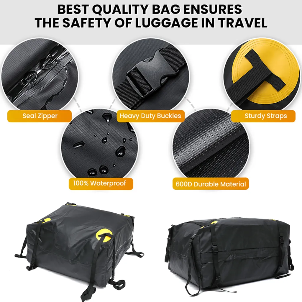 Dachboxen, 15 Kubikfuß Wasserdichtes Dachgepäck, Dachgepäcktransporttasche, Passend Für Alle Fahrzeuge Mit Gepäckträger, Inklusive 4 Verstärkungsgurte