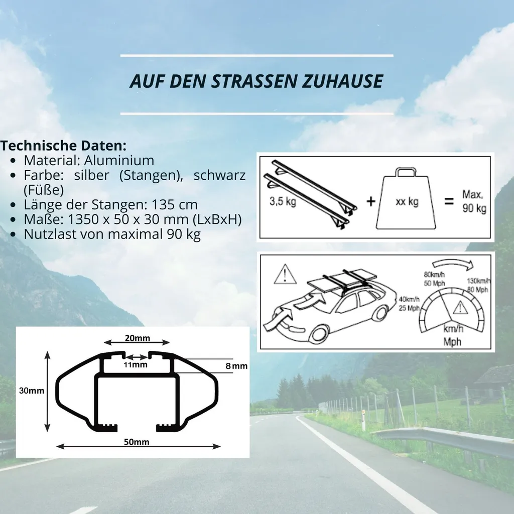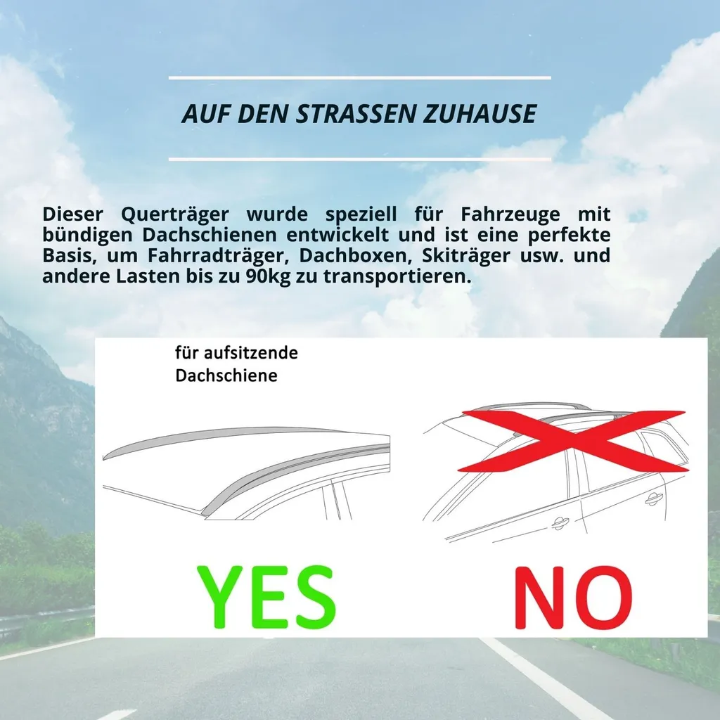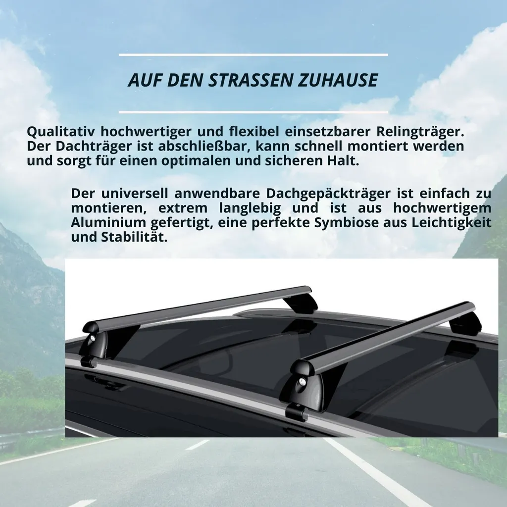 Dachträger – Relingträger – Dachgepäckträger – Querträger Dachreling – Relingträger Universal – VDP-R003 – Aluminium – 135cm – 90kg – Für Bündige Dachschienen