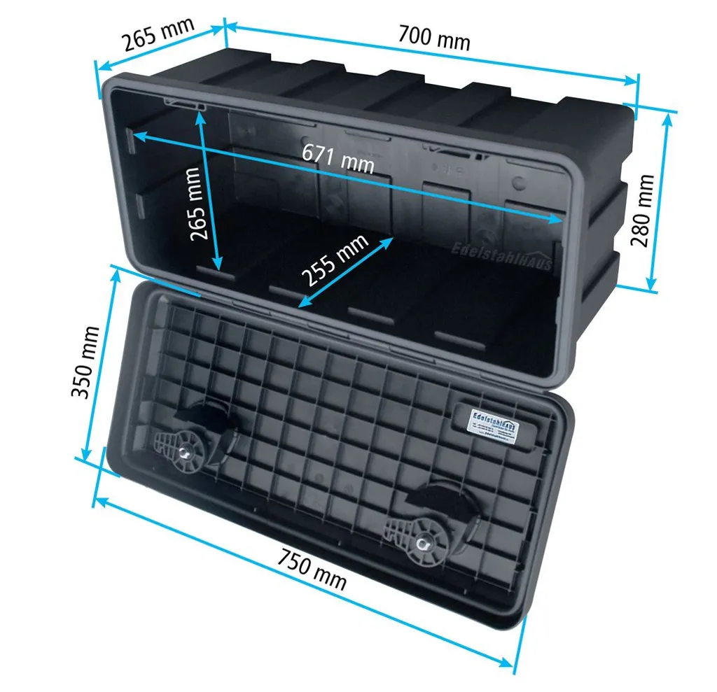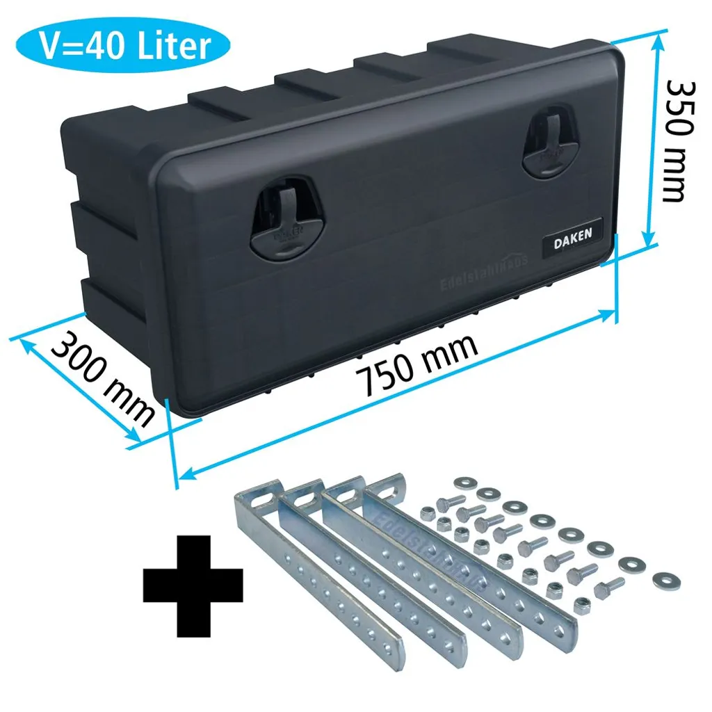 Daken J040 + Inkl. Vertikaler Halter VH401, Werkzeugkasten, Stauboxen, Staukasten LKW, Unterflurbox, 750 X 350 X 300 Mm, Ca. 40 Liter