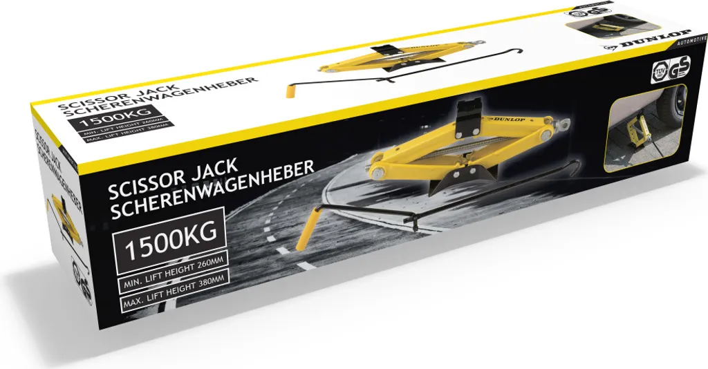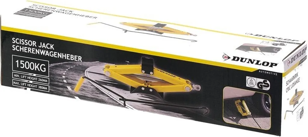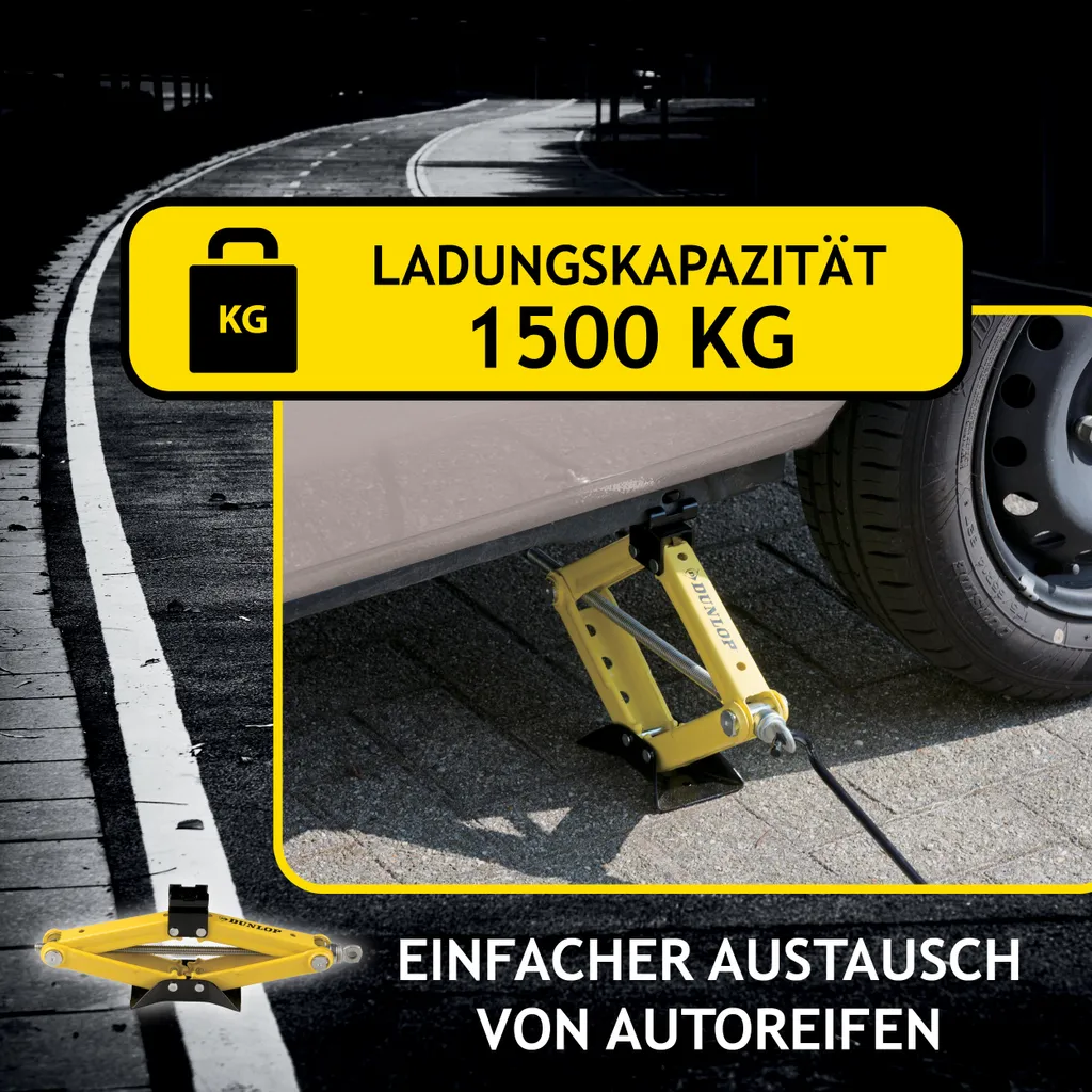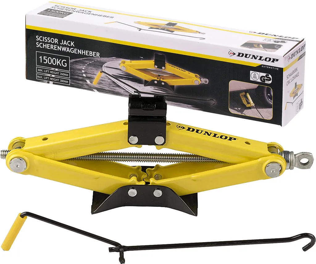 Dunlop Wagenheber – Mechanisch – Hubkraft 1,5 Tonne – Hubhöhe 26-38 Cm