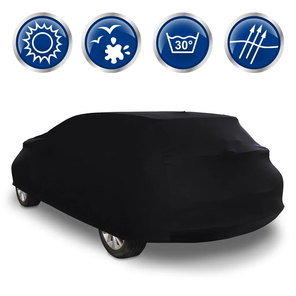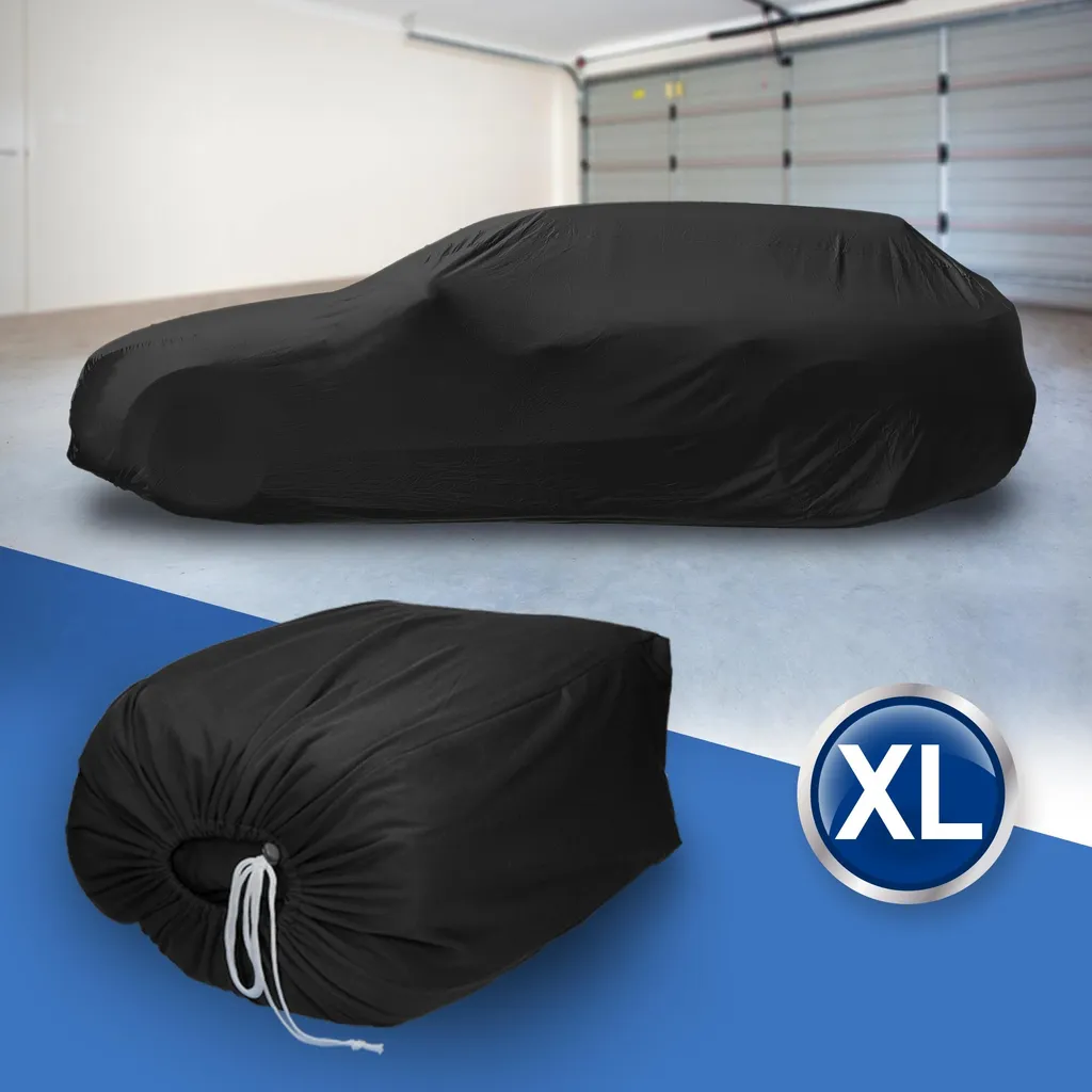 ECD Germany Autoabdeckung Indoor – Größe XL – 533x178x119 Cm – Schwarz – Aus Stretch Soft Satin, Atmungsaktiv, Staub- Und Schmutzabweisend, Abdeckplane Autoplane Autogarage Ganzgarage Schutzdecke Schutzhülle