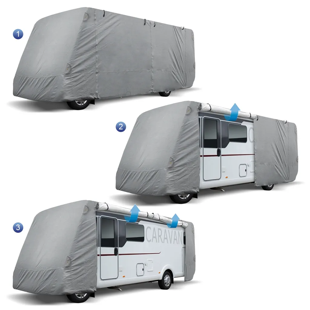 ECD Germany Schutzhülle Für Wohnmobile Größe M – 610x235x275 Cm – Atmungsaktive Integrierte Abdeckplane Ganzgarage Schutzhaube Für Reisemobile Campingmobile Wohnwagen