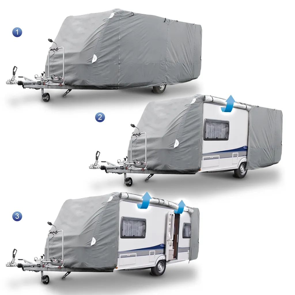 ECD Germany Schutzhülle Für Wohnwagen Größe XXL 700x225x220 Cm – Atmungsaktiv – Wasserdicht – Staubdicht UV Schutz – Schutzplane Schutzhaube Abdeckplane Abdeckung Vollgarage Wohnmobil Caravan