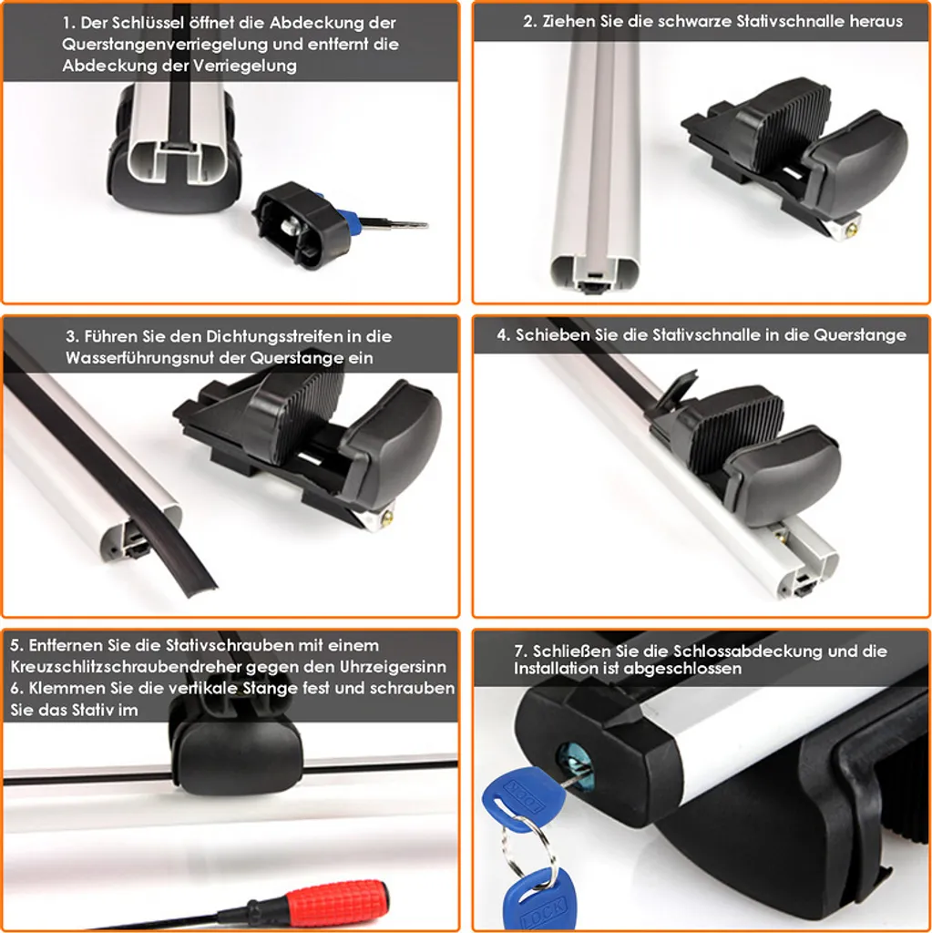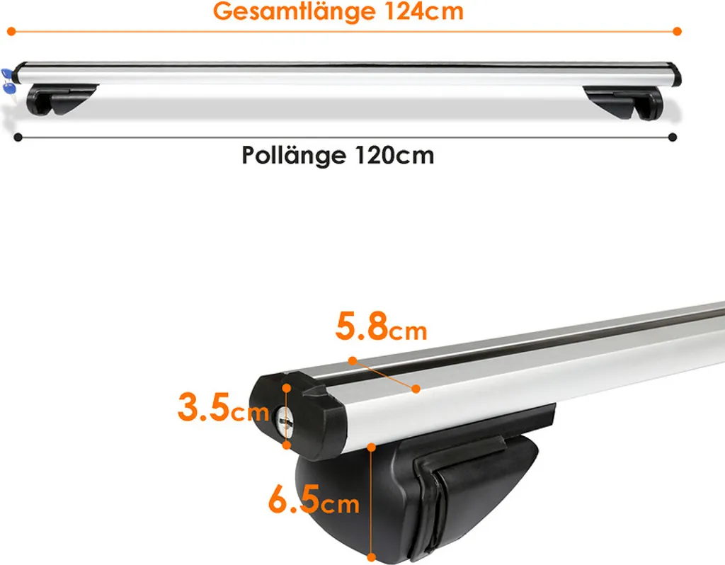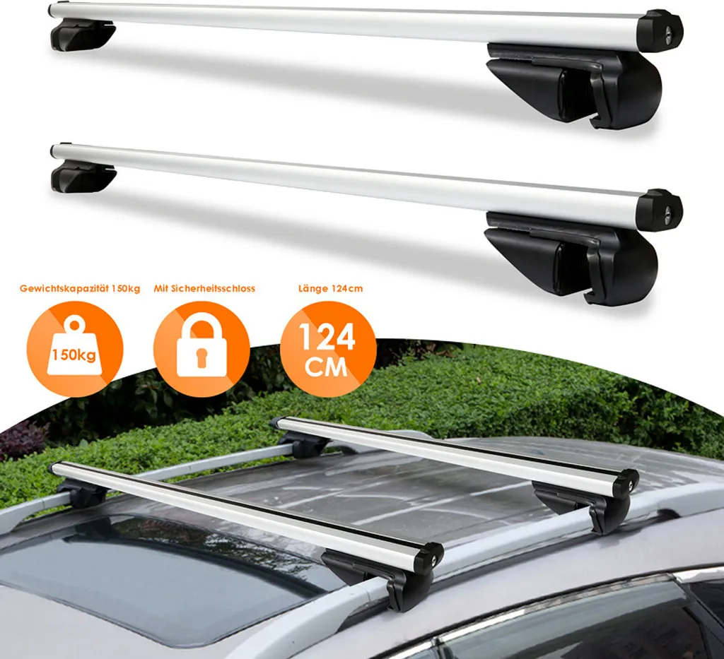 EINFEBEN Relingträger Universal L124 Dachträger Einstellbare Breite 150kg Alu Abschließbar Grundträger Auto Mit Schlüssel
