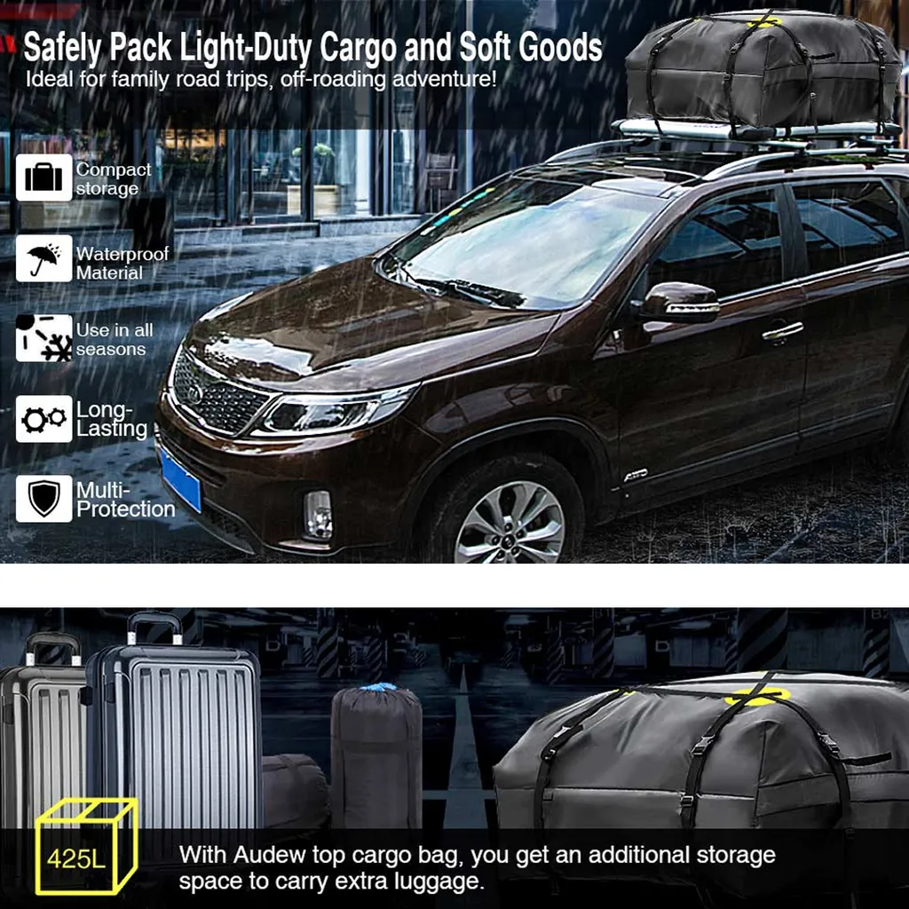 Faltbare Dachboxen Dachkoffer Mit Aufbewahrungstasche, Gepäckbox Dachgepäckträger Wasserdicht Soft Dachtasche Aufbewahrungsbox Für Reisen Und Gepäcktransport, Auto, Van, SUV
