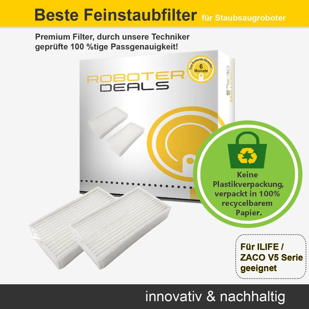 Feinstaub-Filter (2 Stück) Für ILIFE / ZACO V3, V5s Pro, V5x Modelle
