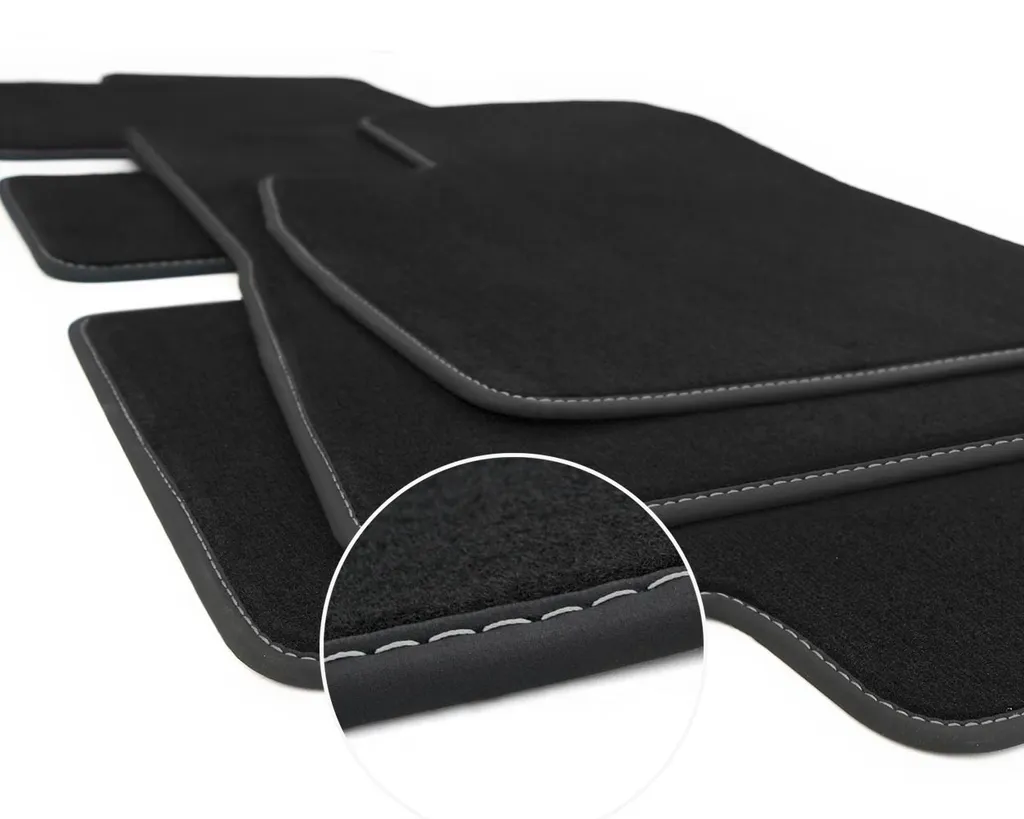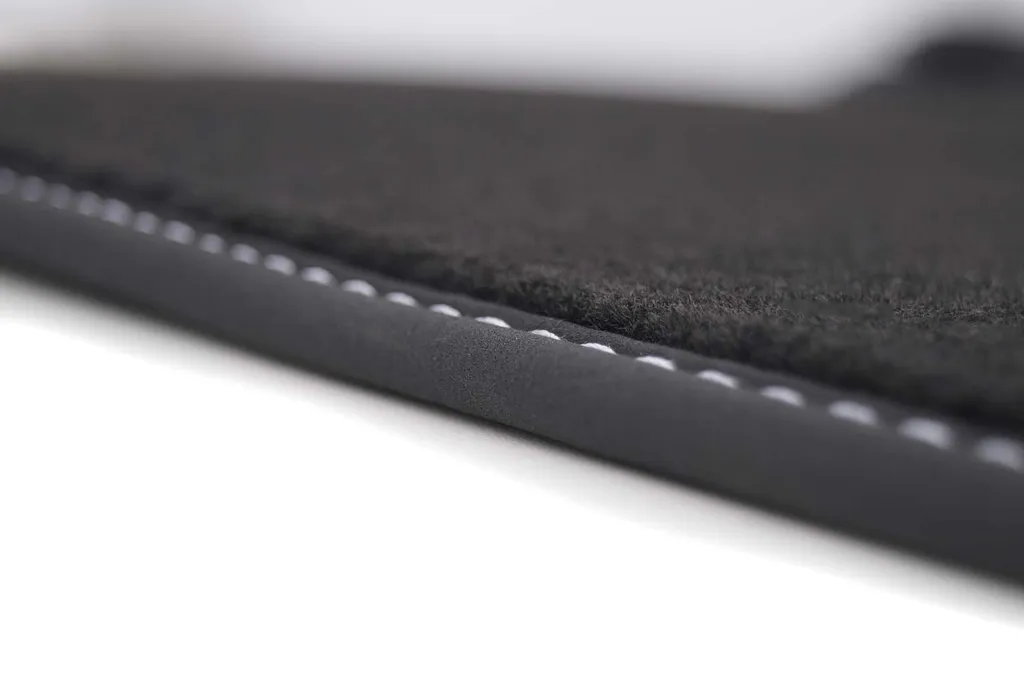 Fußmatten Für Tesla Model Y (Ziernaht Weiß) Premium Velours Autoteppich Matten Original Qualität, Schwarz, Komplett Set