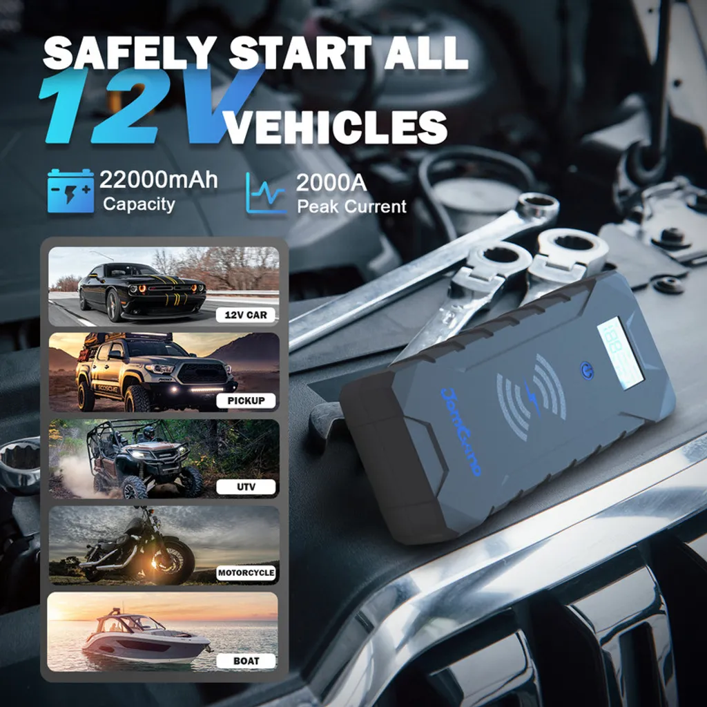 Gens Ace Auto Starthilfe Powerbank 2000A 22000mAh Mit 10W Drahtloses Ladegerät 12V Starthilfekabel Jump Starter Autobatterie-Ladegerät Booster