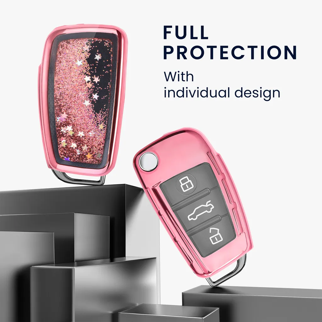 Kwmobile Autoschlüssel Hülle Kompatibel Mit Audi 3-Tasten Klappschlüssel – TPU Schutzhülle Schlüsselhülle Cover Schneekugel Sterne Pink Metallic Pink