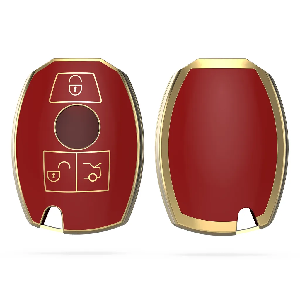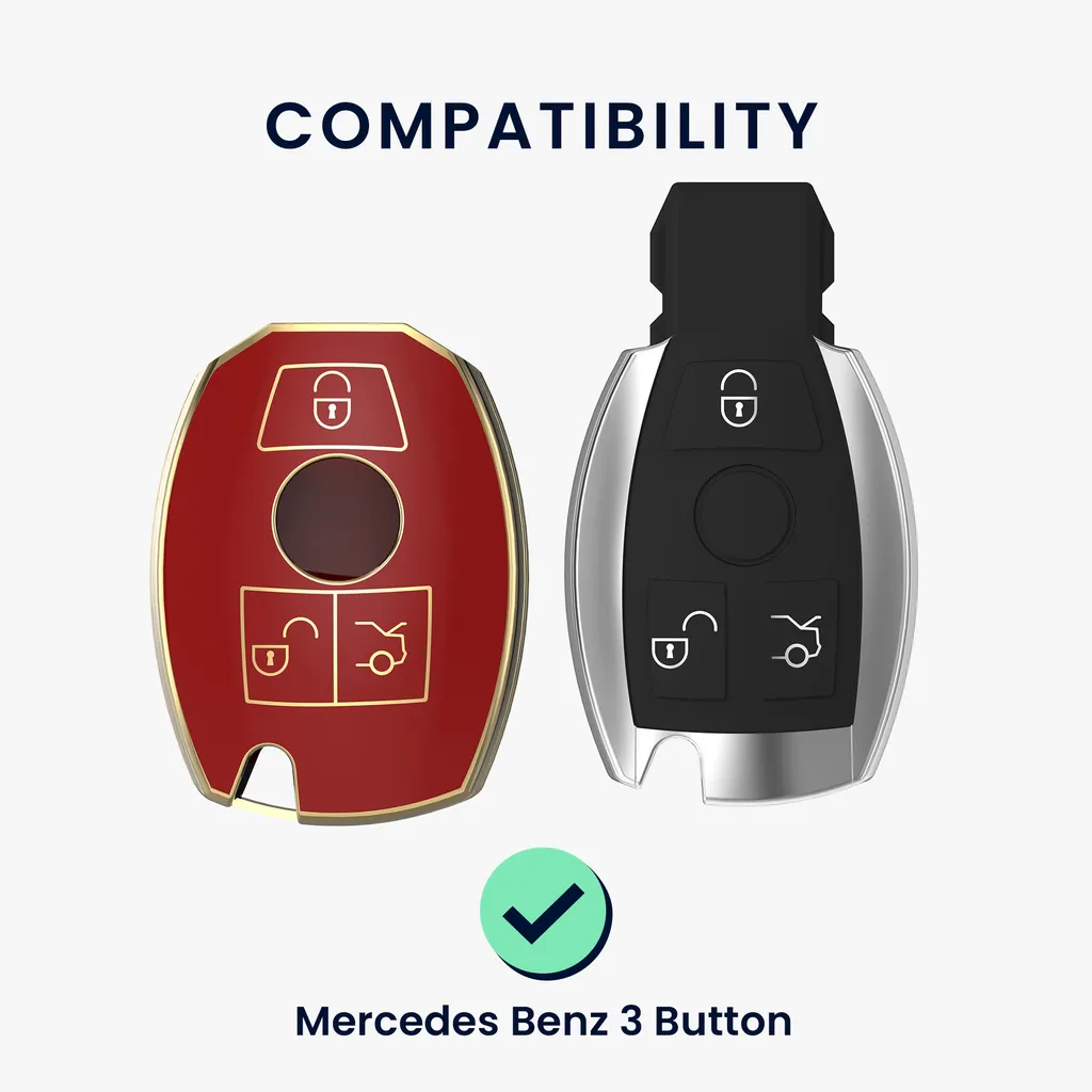 Kwmobile Autoschlüssel Hülle Kompatibel Mit Mercedes Benz 3-Tasten Autoschlüssel – Schlüsselhülle Silikon Cover – Rot Gold