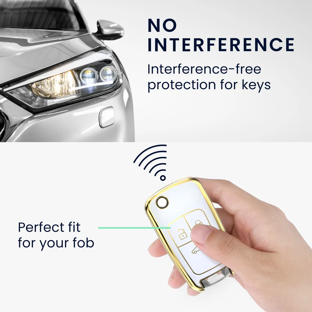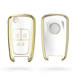 Kwmobile Autoschlüssel Hülle Kompatibel Mit Opel 3-Tasten Klapp Autoschlüssel – Schlüsselhülle Silikon Cover – Weiß Gold