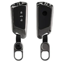 Kwmobile Autoschlüssel Hülle Kompatibel Mit VW Golf 8 3-Tasten Autoschlüssel – Hardcover Metall Schutzhülle Dunkelgrau