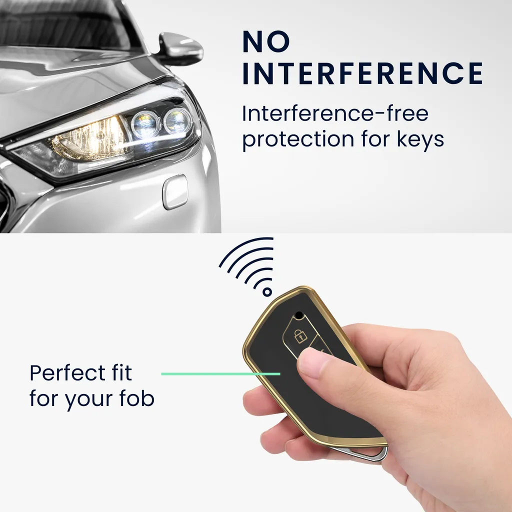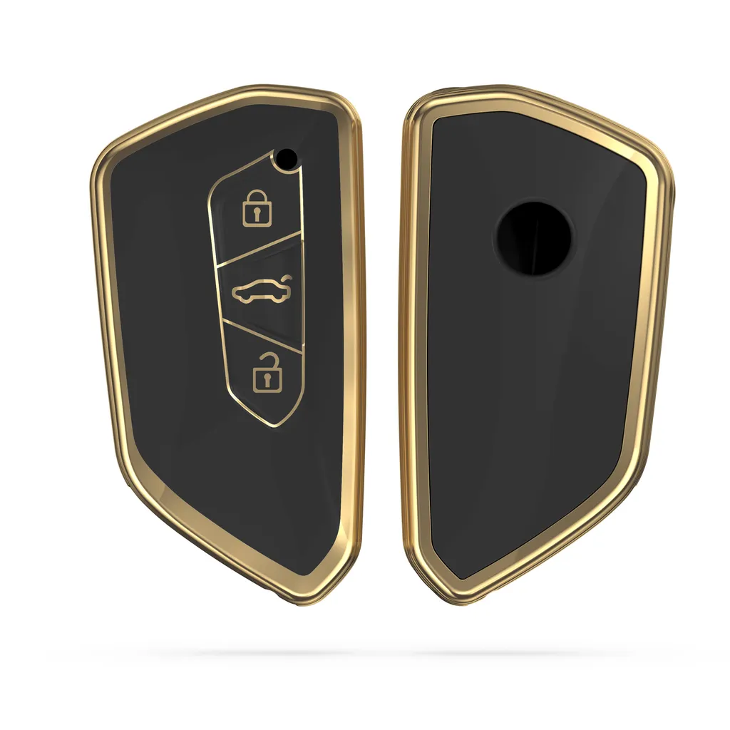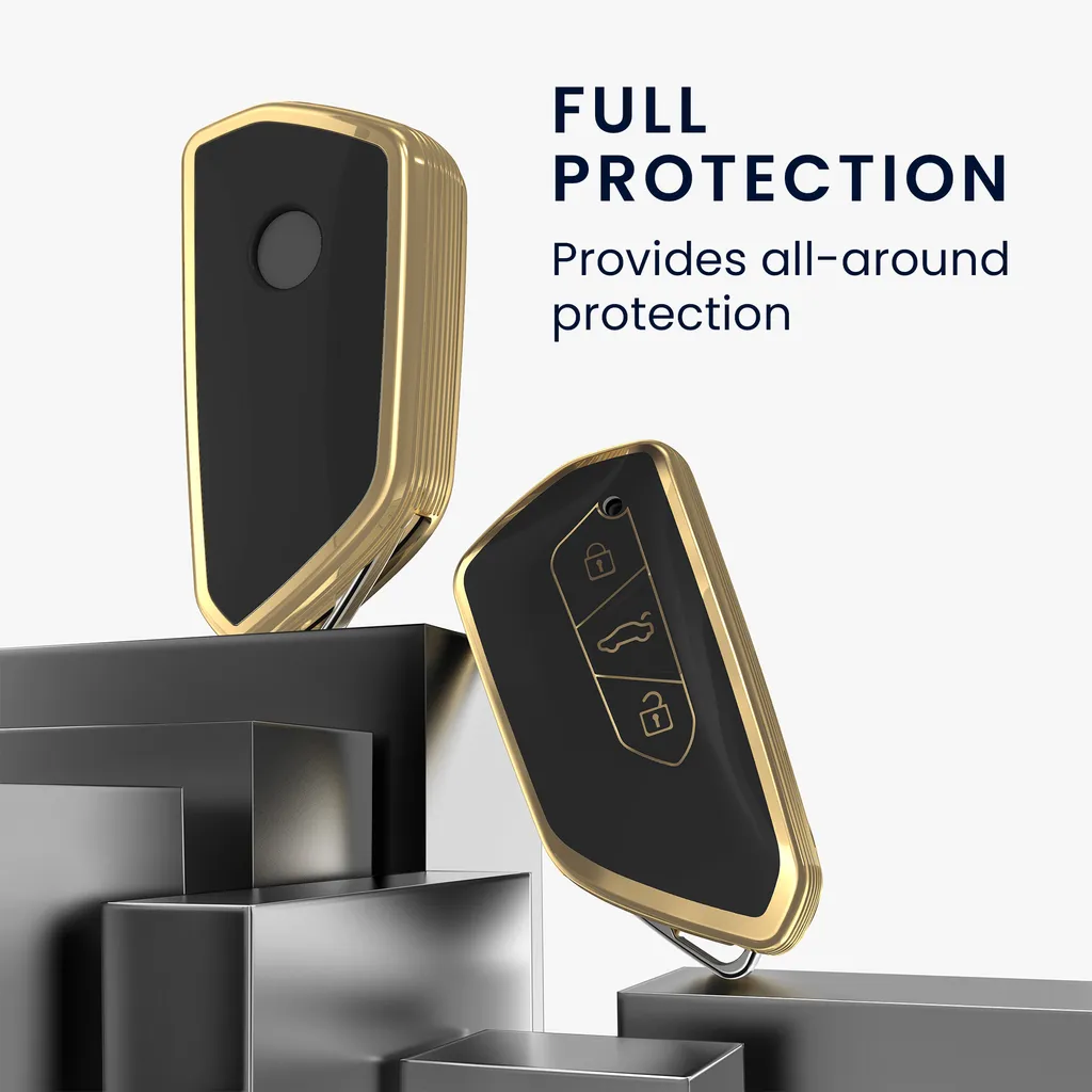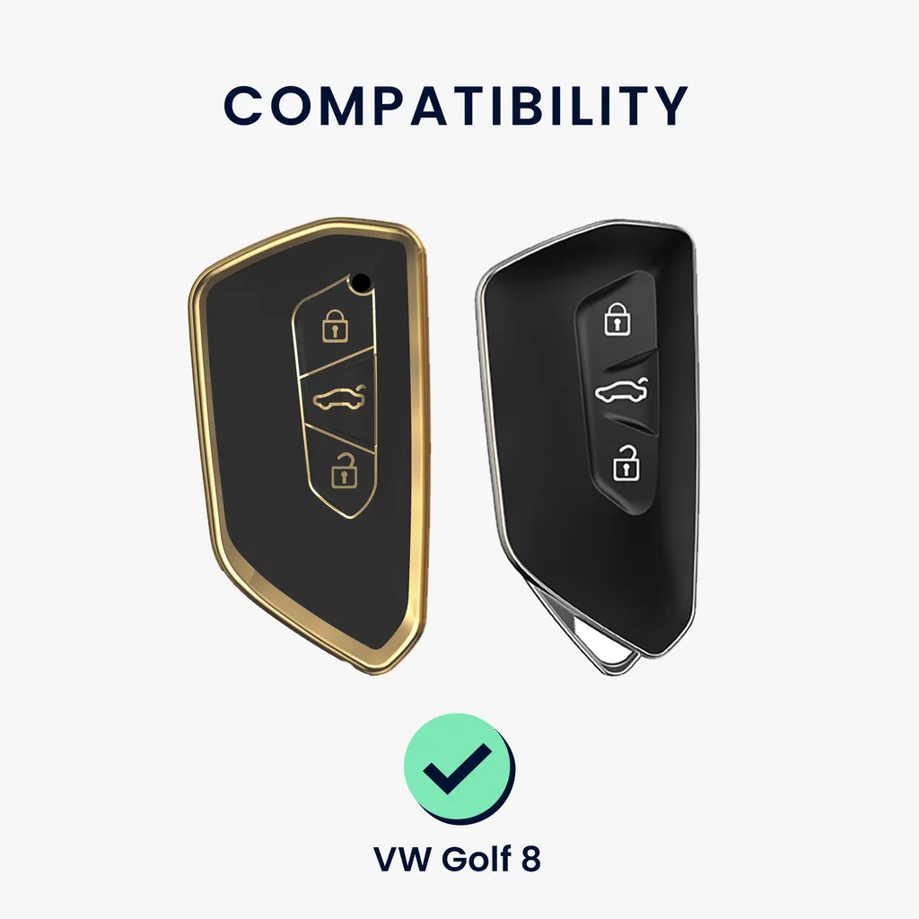Kwmobile Autoschlüssel Hülle Kompatibel Mit VW Golf 8 3-Tasten Autoschlüssel – Schlüsselhülle Silikon Cover – Schwarz Gold