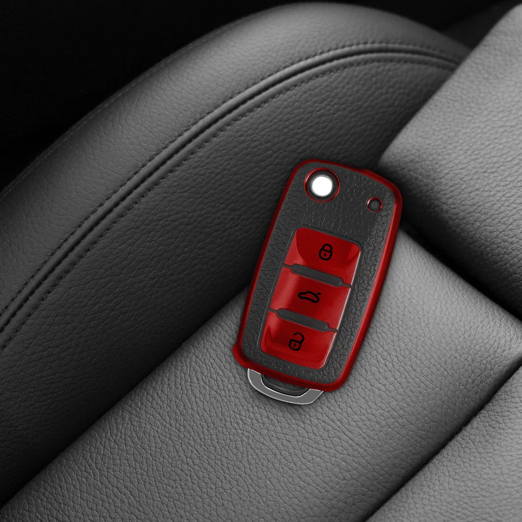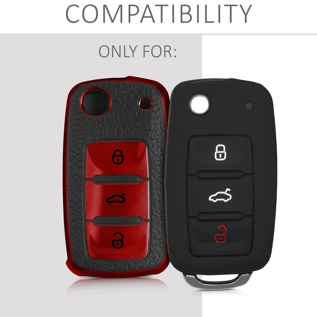 Kwmobile Autoschlüssel Hülle Kompatibel Mit VW Skoda Seat 3-Tasten Autoschlüssel – Schlüsselhülle Cover Rot Schwarz