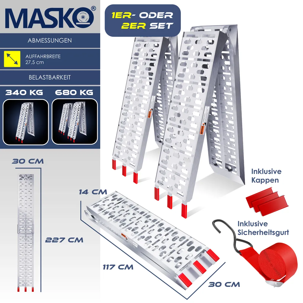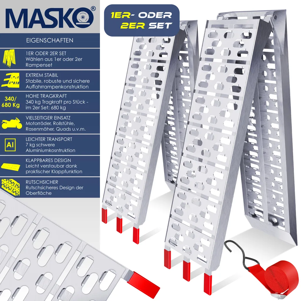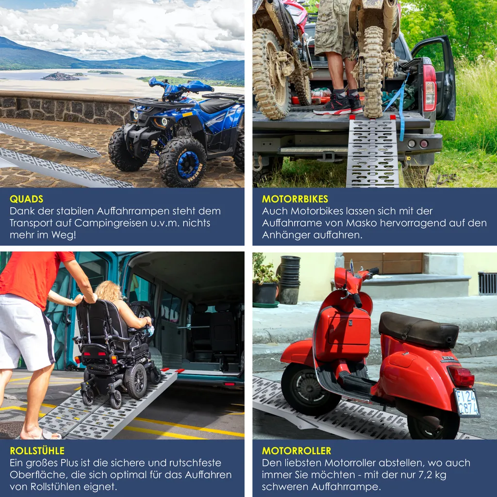 Masko® ALU Auffahrrampe Verladerampe Verladerampe Verladeschiene Antirutsch Klappbar, Menge:1x Auffahrrampe