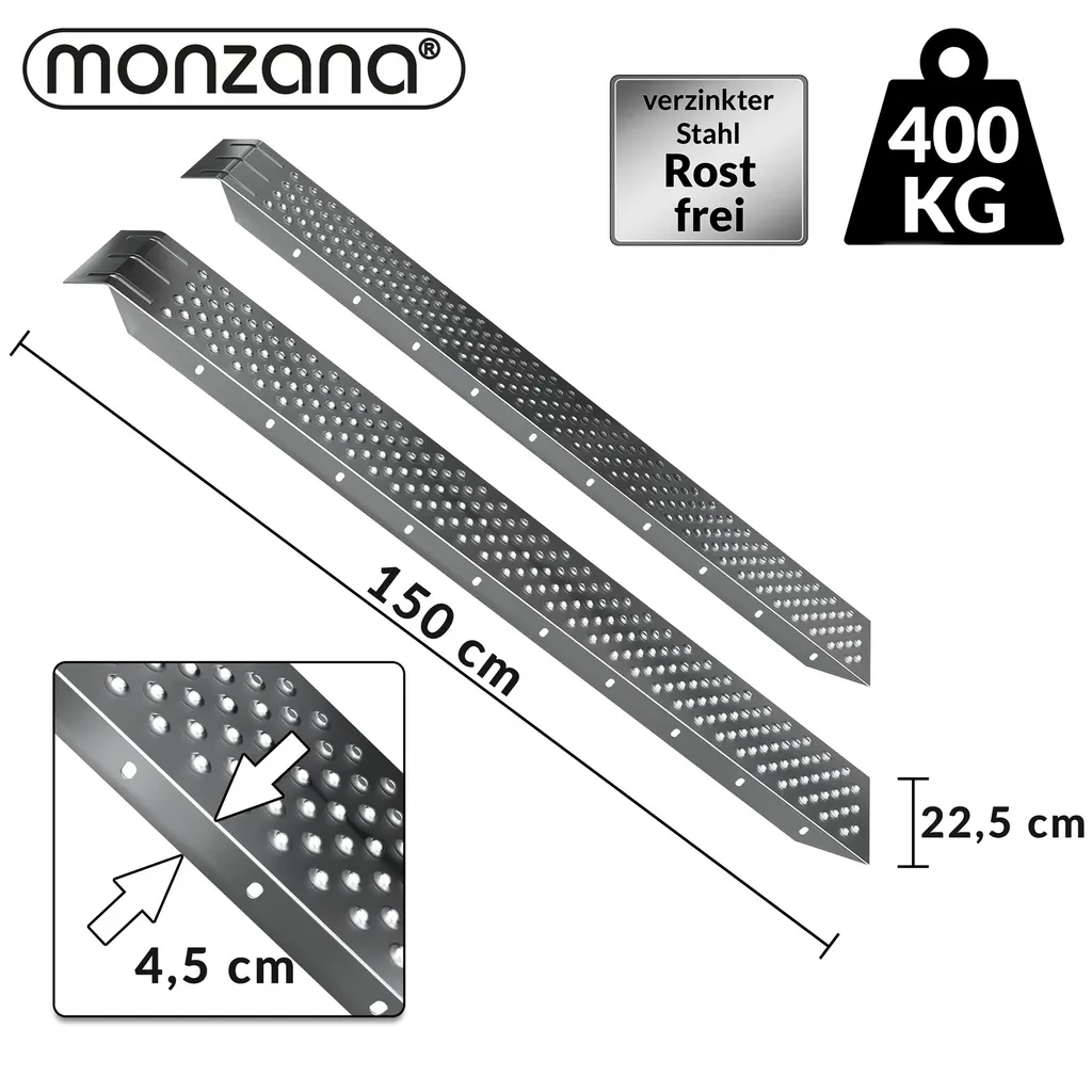 Monzana 2x Auffahrrampe 400kg Laderampe Verzinkter Stahl Rutschfeste Oberfläche Auffahrschiene Laderampe Anhängerrampe PKW