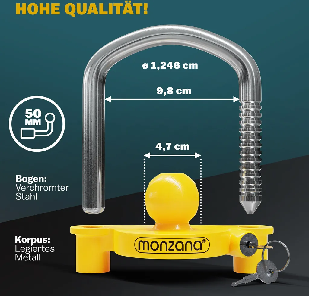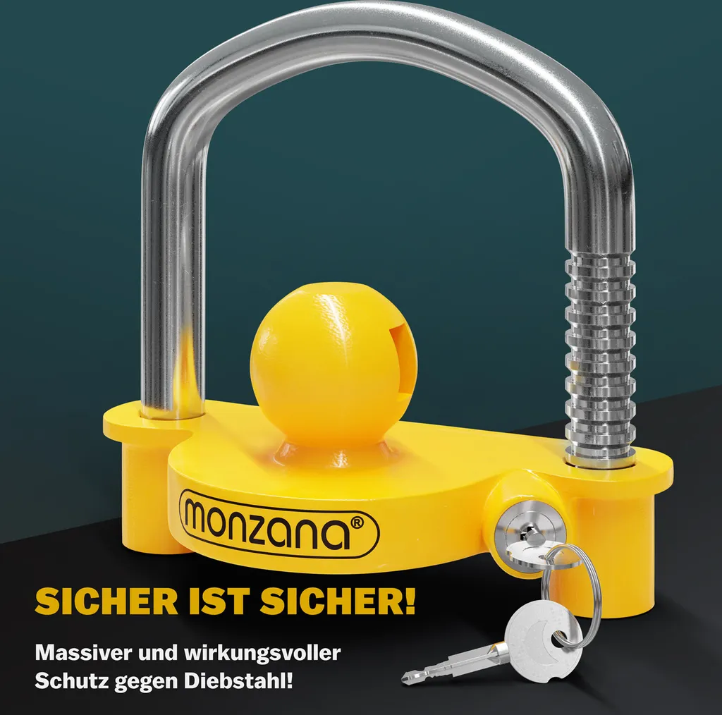 Monzana Anhängerschloss Für Gängige Anhängerkupplung Einfache Montage Diebstahlschutz Diebstahl Anhängersicherung Sicherheitsschloss, Farbe:gelb