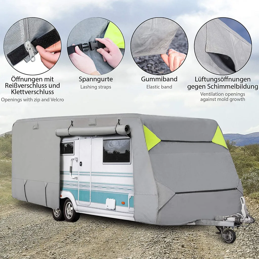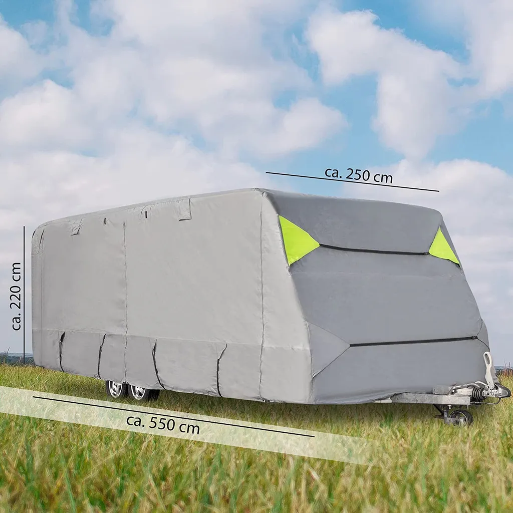 ONVAYA® Wohnwagen-Schutzhülle | Abdeckung Fürs Wohnmobil | Atmungsaktive Abdeckplane | Wind- Und Wetterfest | 550 X 250 X 220 Cm