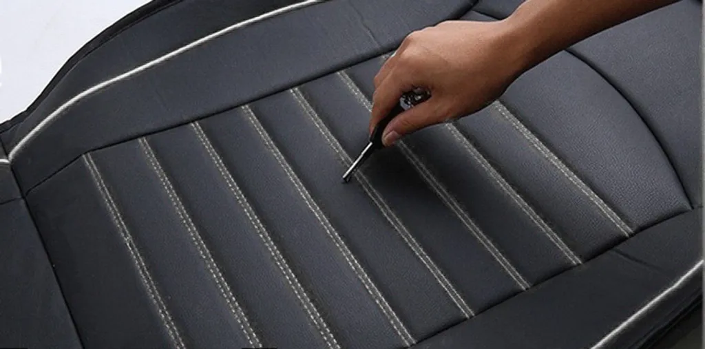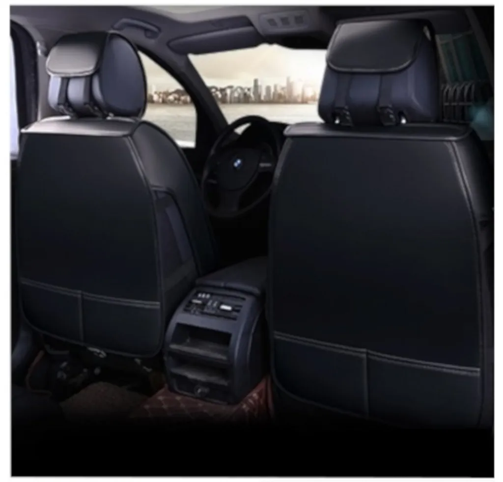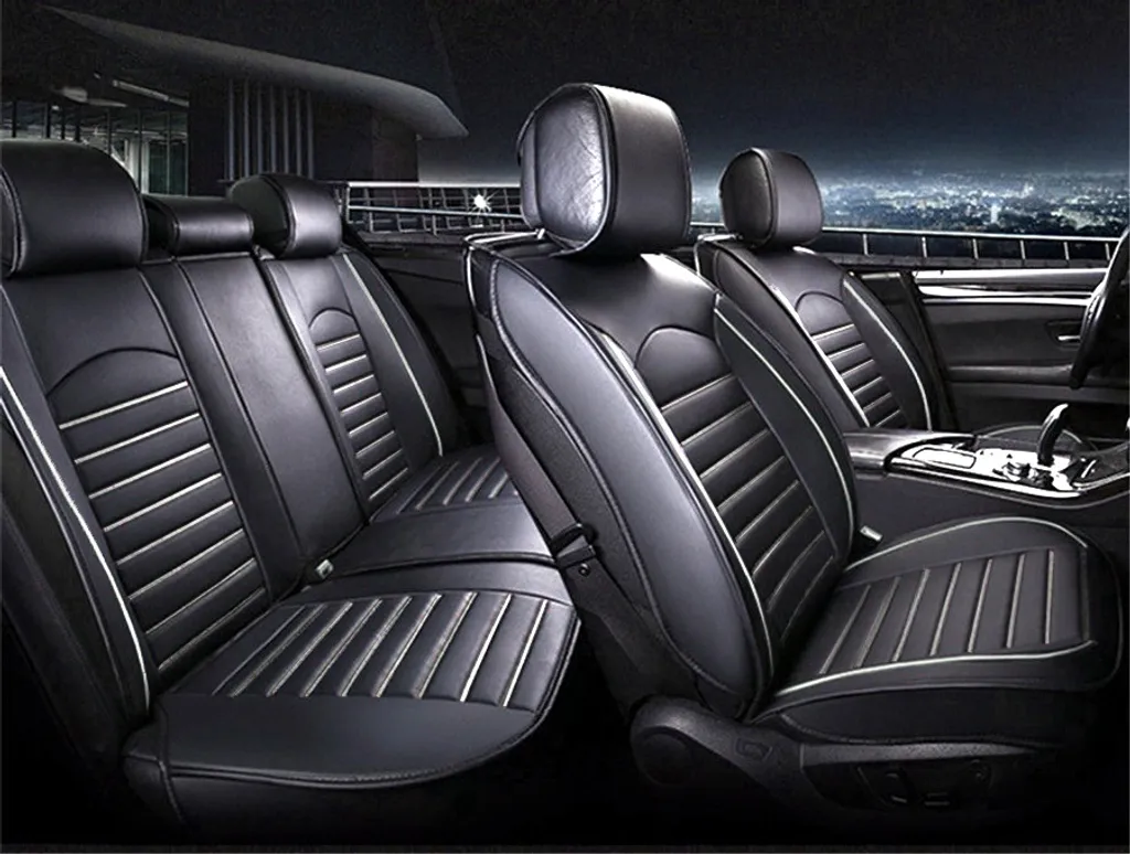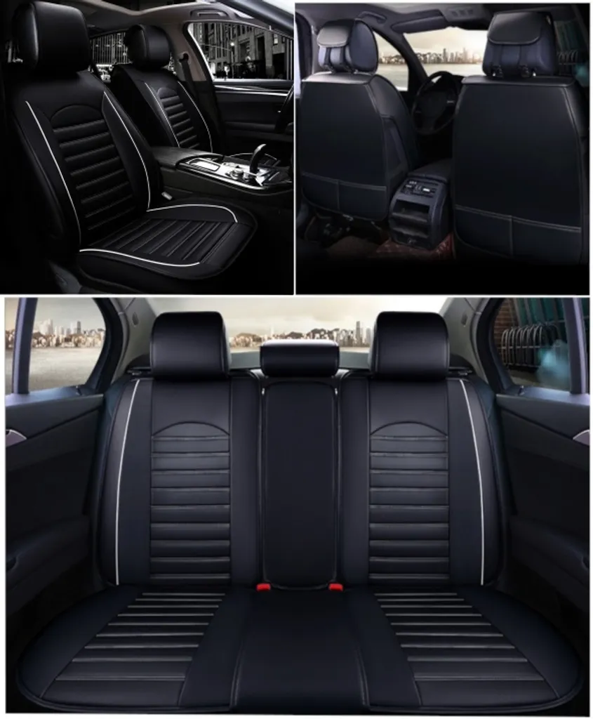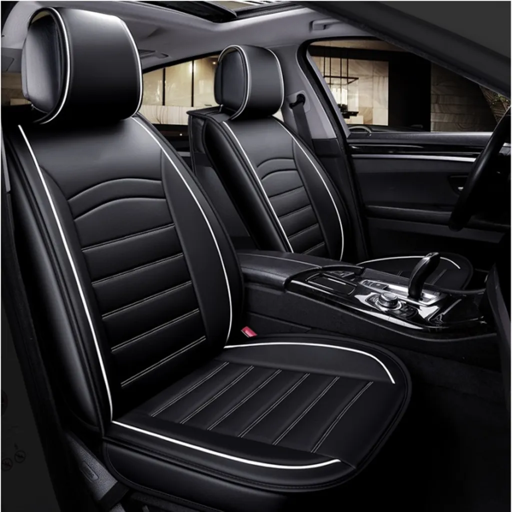 Schwarz Komplettsatz Sitzbezüge Kunstleder Schonbezüge Weiße Rand Fullset