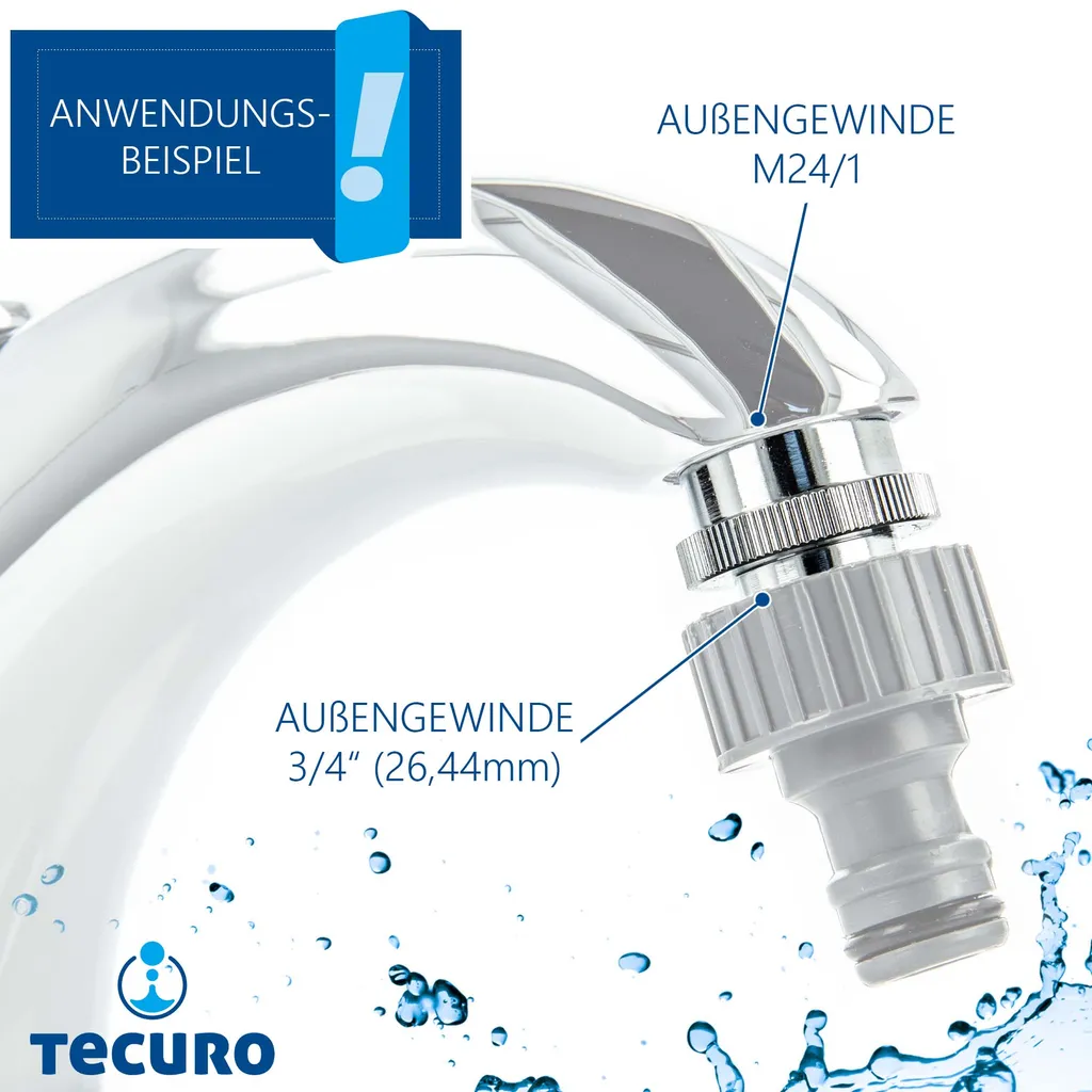 Tecuro Aufnahme Adapter Übergangsstück M24 X 1 AG X 3/4 Zoll AG, Steckkupplung, MS Hochglanzverchromt