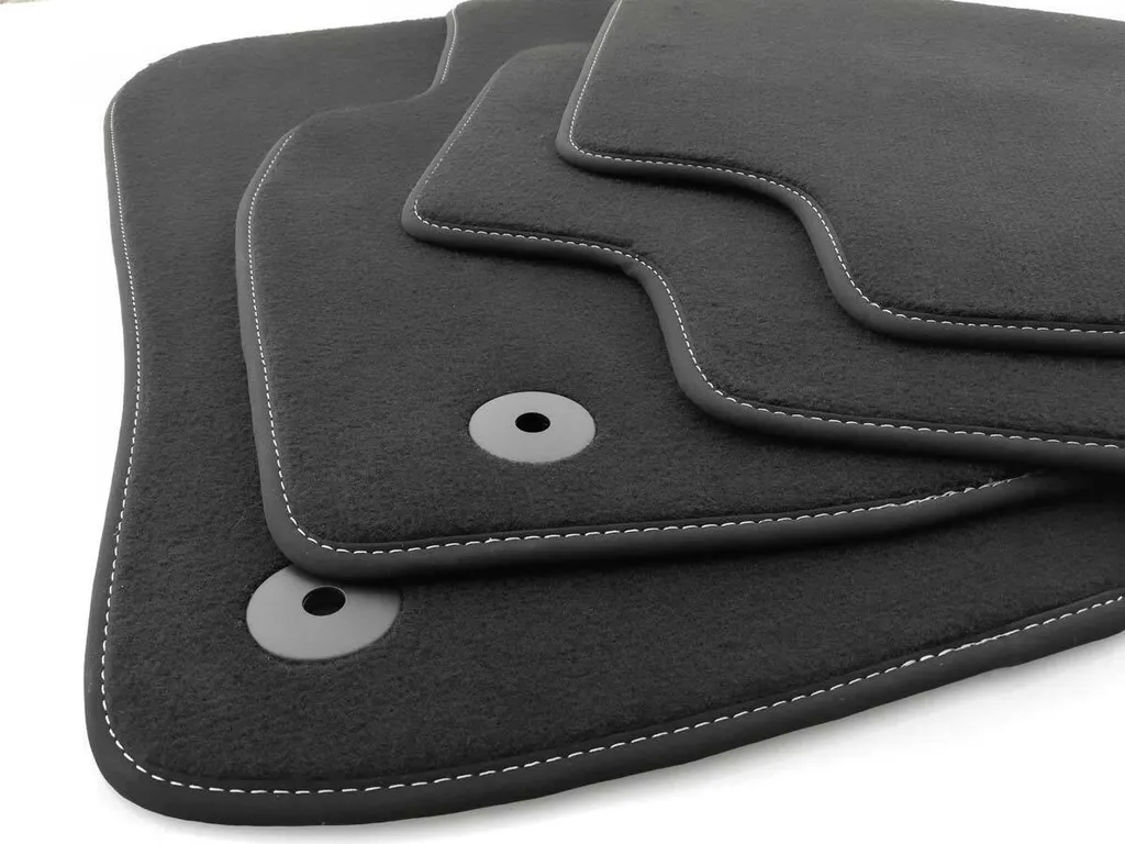 Volkswagen Fußmatten Für VW ID3 ID.3 Passend (Ziernaht Silber) Velours Premium Automatten Matten Innen Schwarz, 4-tlg