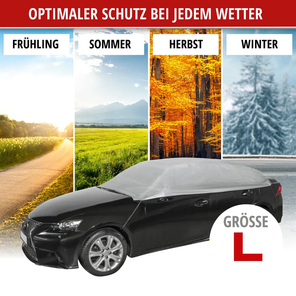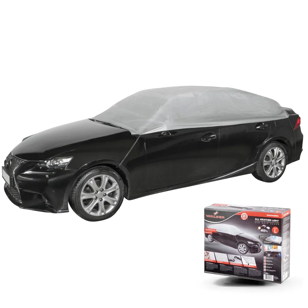 WALSER Abdeckplane Auto All Weather Light, Abdeckplane Wasserdicht, 100% Wetterfeste Auto Abdeckplane, Autoabdeckung Outdoor, Auto Abdeckplane Wasserdicht, Autogarage, Halbgarage PKW L Grau