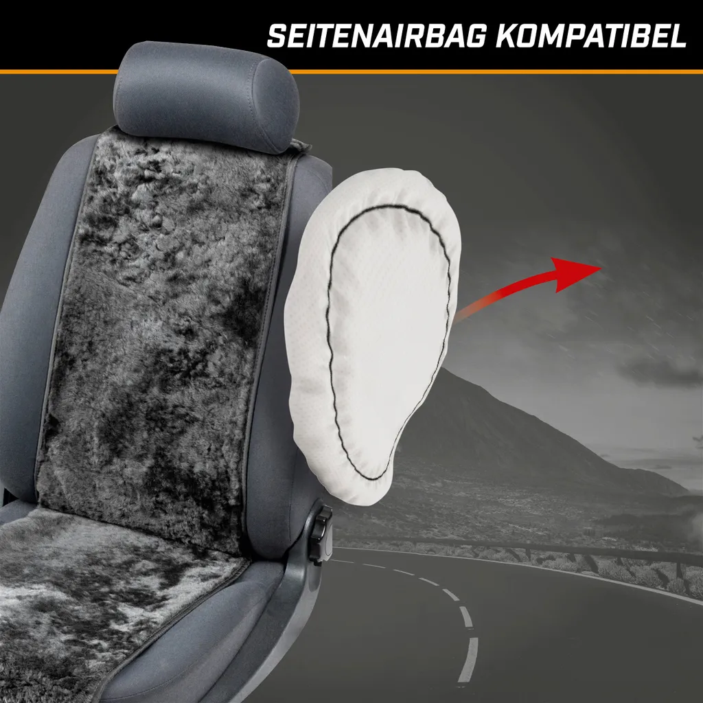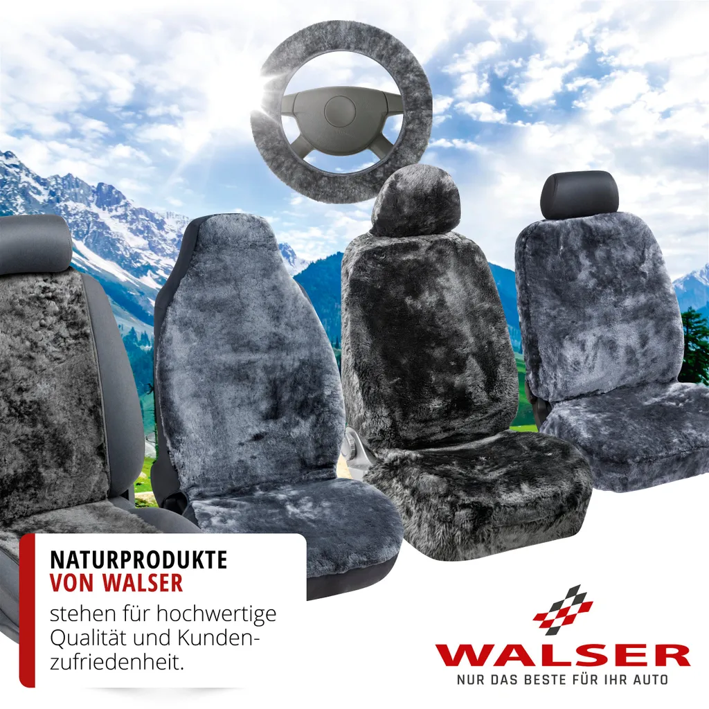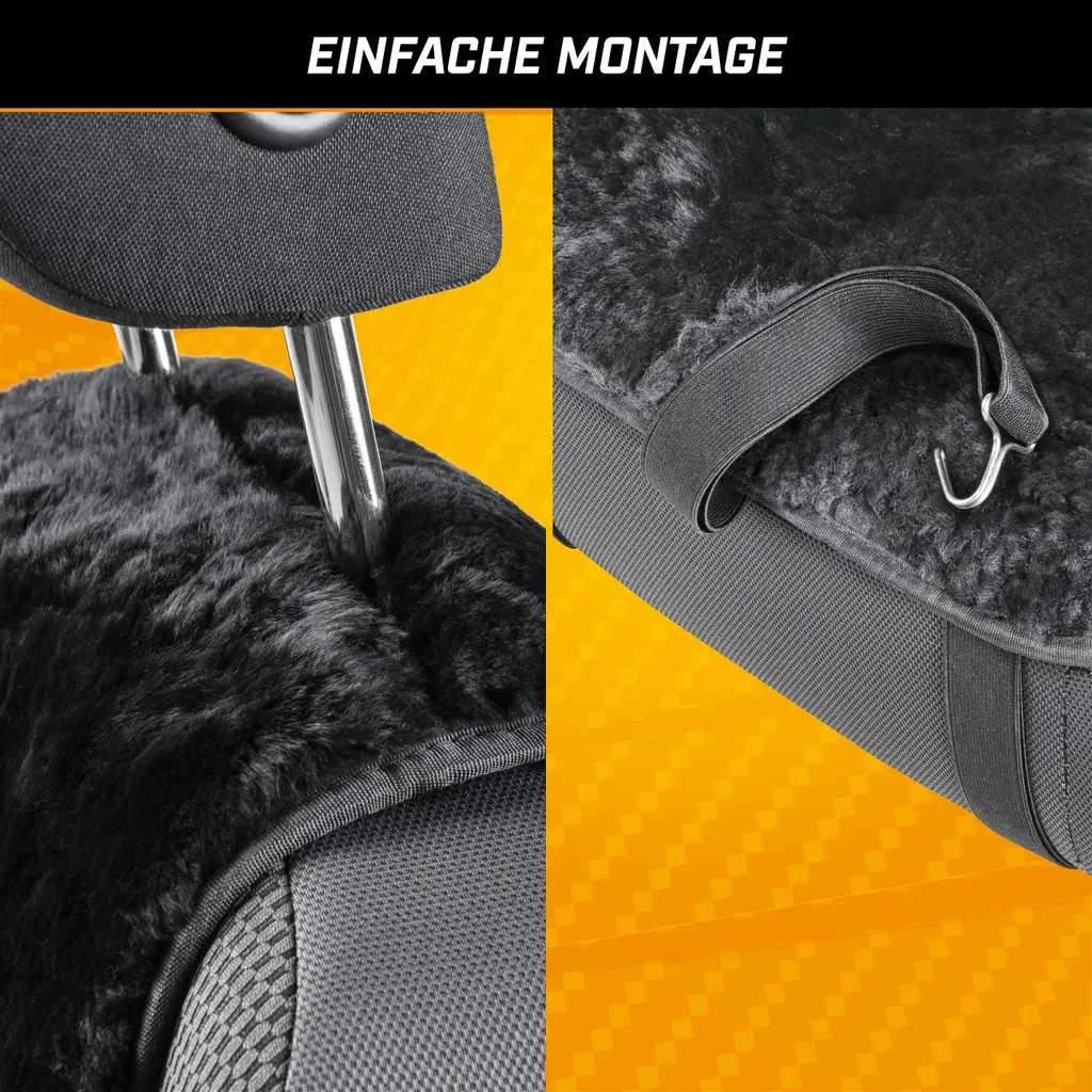 WALSER Autositzbezug Lammfell, Lammfellbezug Cosmo, Autoschonbezug Lammfell, Autositzauflage Lammfell, Sitzauflage Echt Lammfell Schwarz 20012
