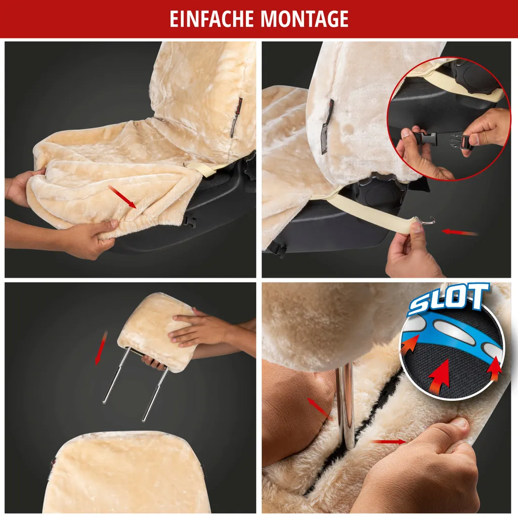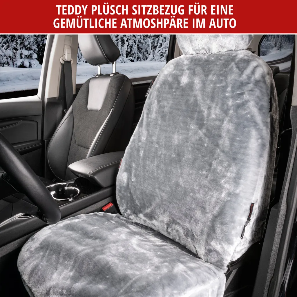 WALSER Autositzbezug Teddy, Sitzbezug Kunstfell, Veganer Auto-Schonbezug In Lammfell-Optik, Flauschiger Plüsch-Schonbezug Vegan Silber